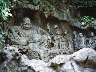 飞来峰此山无石不奇,无树不古,无洞不幽,秀丽绝伦,其景观与周围诸峰迥异,徜徉在灵隐、飞来峰、三天竺一派悠远、深沉的佛国氛围里,寻访并尽情领略佛教艺术的魅力,能真切感受到蕴藏在西湖山水之间的丰厚的历史文化韵味。